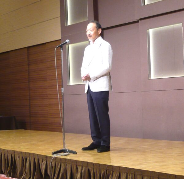 参加者は、1テーブル7人掛けが6卓、8人掛けが2卓、9人掛けが3卓、10人掛けが1卓で、合計95名でした。中にはご家族連れやお子様の姿も見られ、学園長を囲んだ家庭的な雰囲気が感じられました。