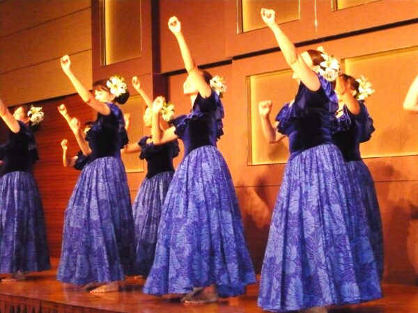余興が始まり、まずはフラダンスが披露され、会場を盛り上げました。突然のハワイアン音楽に一同驚いていましたが、学園長のお好みなのでしょうか、インパクトのある演出でした。かつて叙勲受章祝賀会では、由紀さおりさんが登壇し、突然歌い始めて驚いたこともありました。