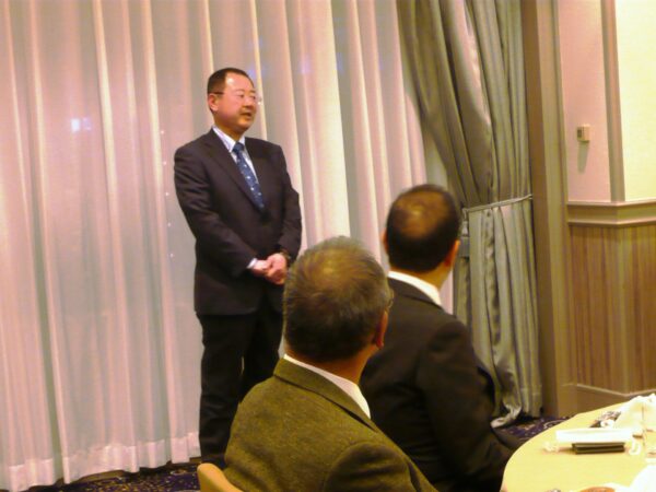 会場につくと皆さんお揃いで、久しぶりの再会に喜びを分かち合いました。準備に大変なご苦労をおかけしたことを、まずはお礼を申し上げました。岩手県支部長は佐藤光博さん、事務局は川又健一さんです。この日学校からは新藤博明学長、中谷義一郎副学長、秋葉憲彦准教授そして中林洋人さんです。専門学校からは末永光八副校長が参加してくださいました。とても豪華な顔ぶれとなりました。